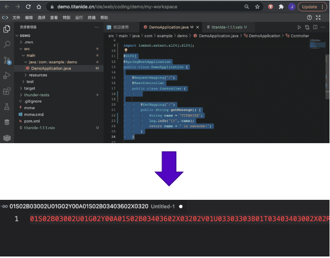 TitanIDE 部署在云端,编码环境与企业云直接打通;