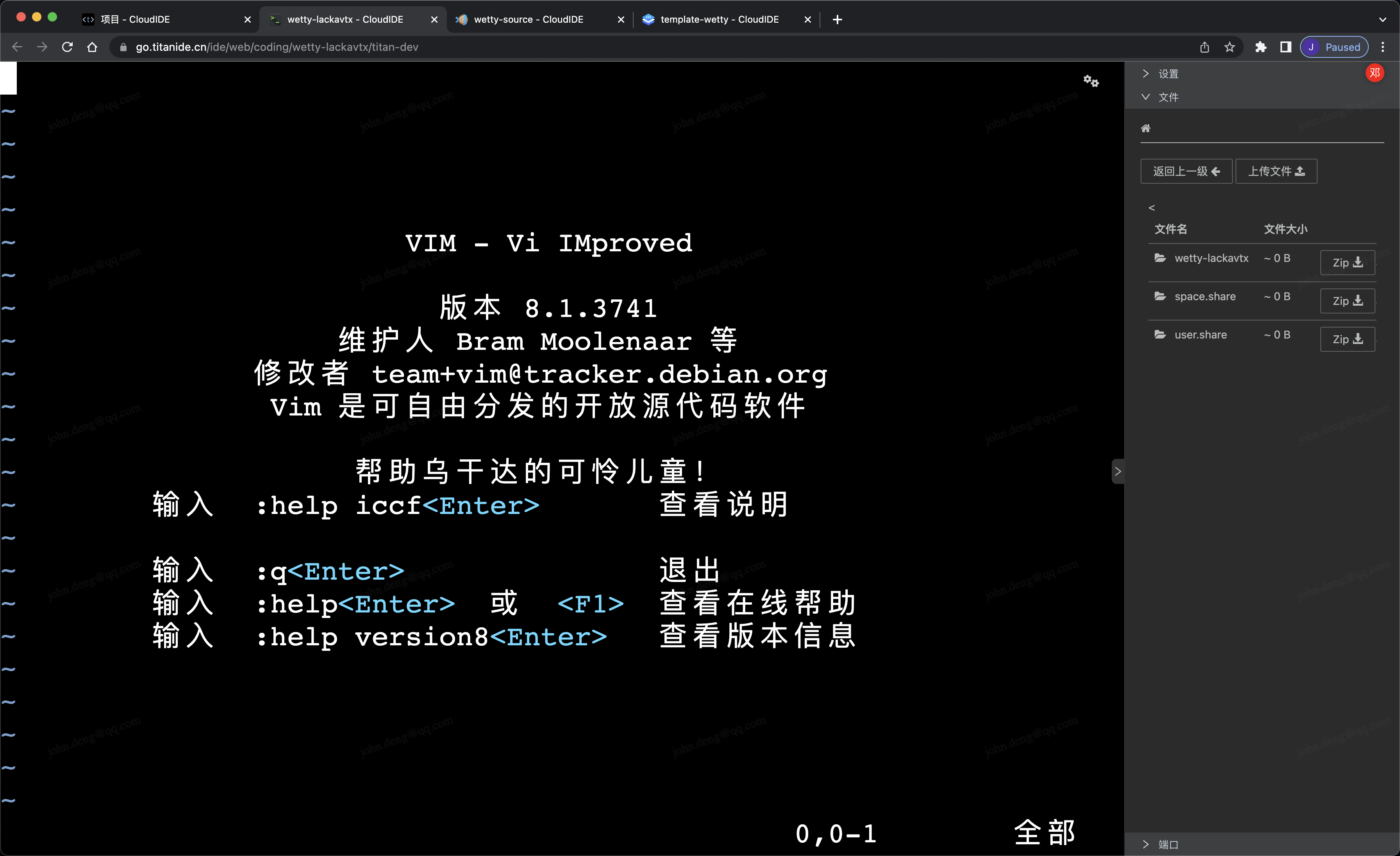 在选用如 WeTTY 这样的开源软件过程中,和使用其他开源软件一样,并不是无偿完全无偿使用的,为了价值的最大化,这就需要像 TitanIDE 这样的开发环境,在 TitanIDE 上面折腾的这些开源软件有个好处就是,我不需要为了某个开源软件去准备开发环境,因为 TitanIDE 提供了我要的开发环境模板,开箱即用。在这个基础之上,我们又可以创建属于自己的模版,本文展示了如何在 TitanIDE 快速解决开源软件的问题,然后定制一个 WeTTY 云端 Terminal 作为开发环境的完整过程,希望能帮到有需要的开发者。